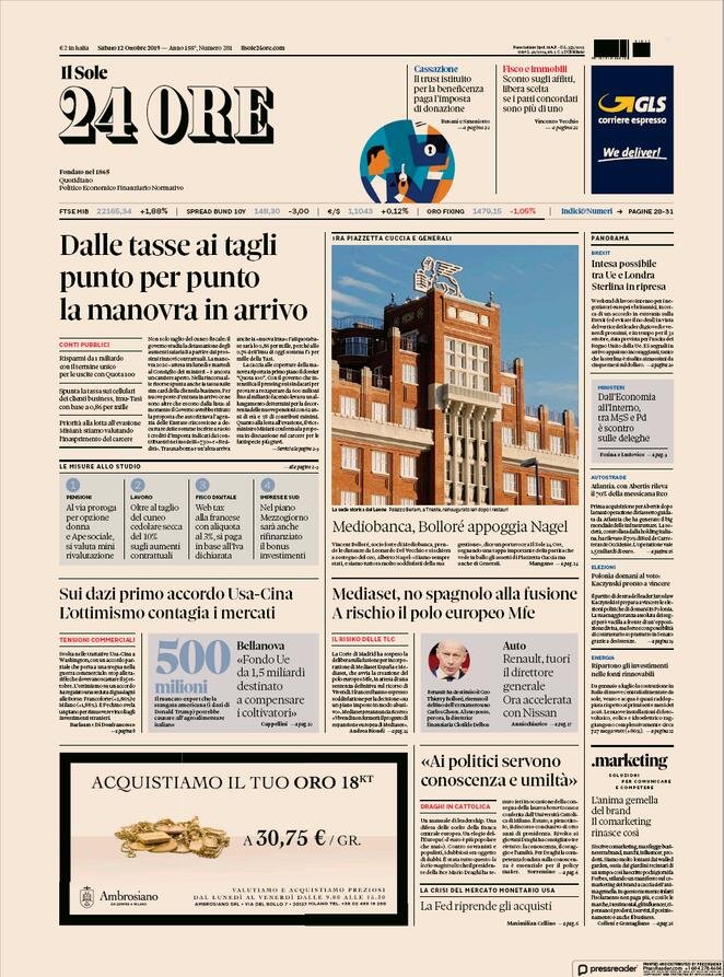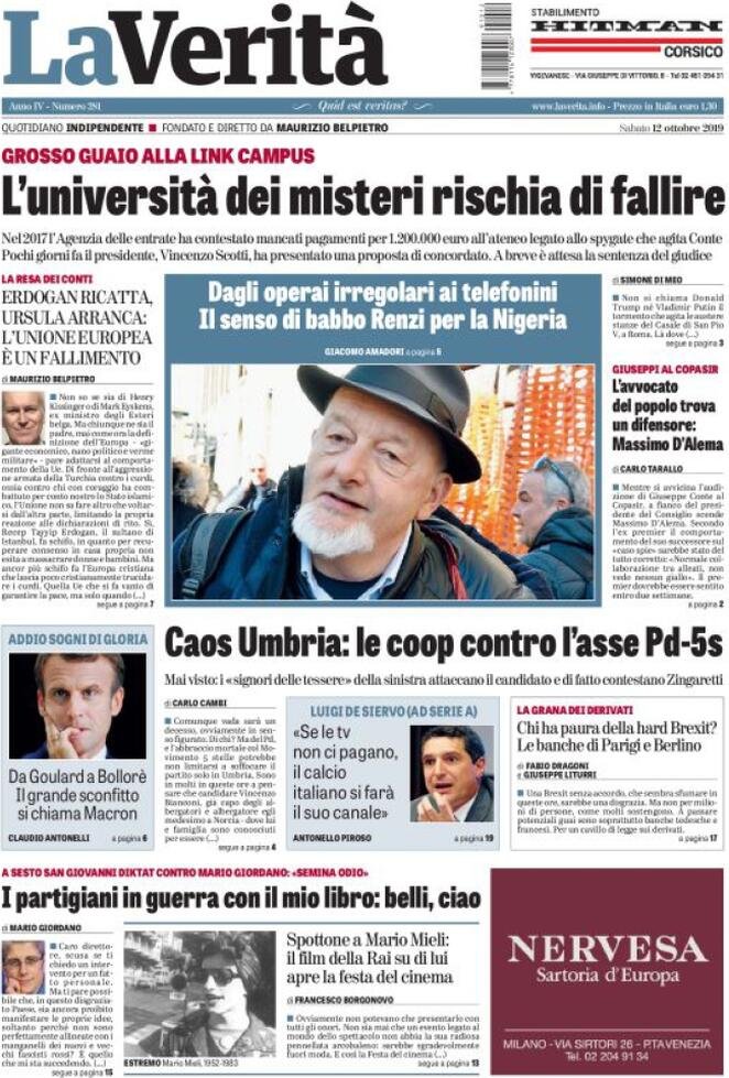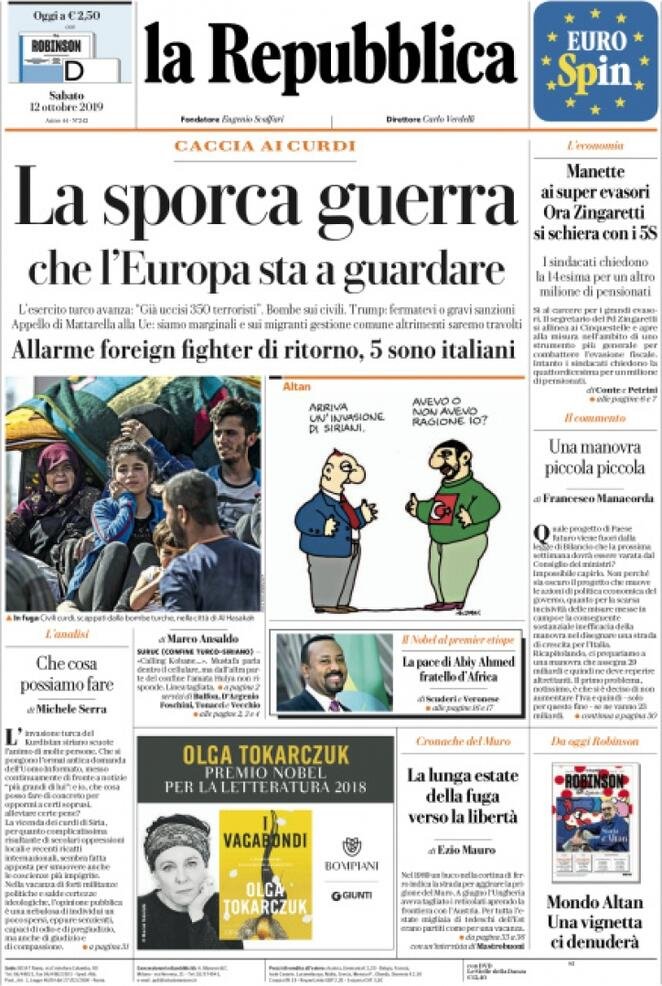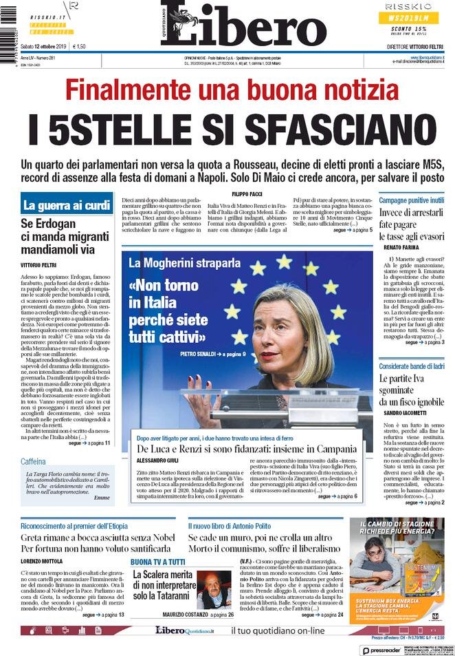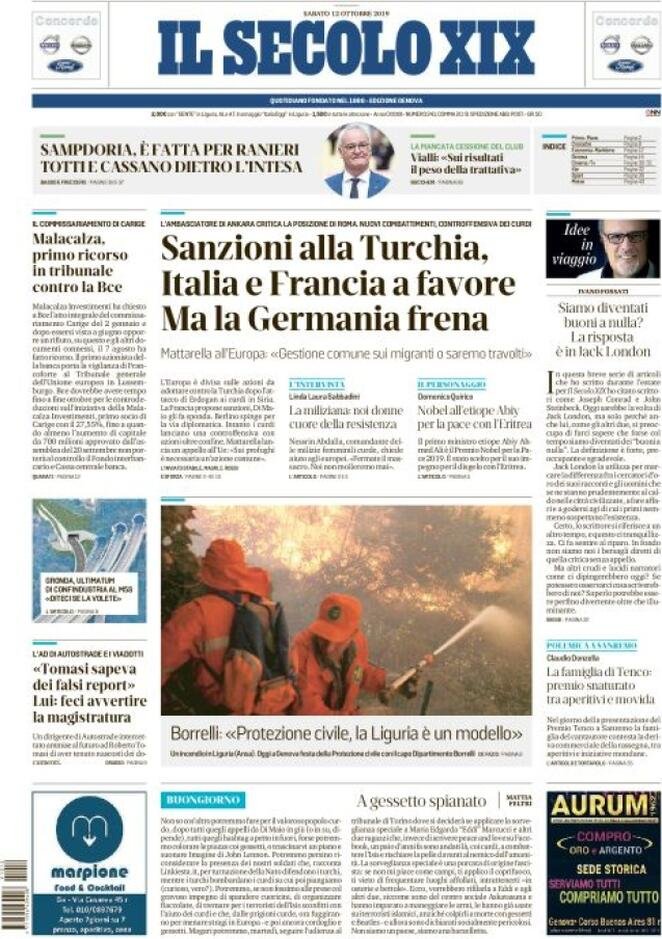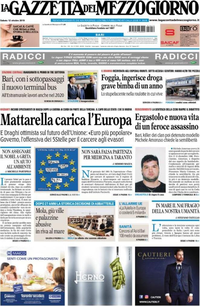 12 ottobre prime pagine Italia