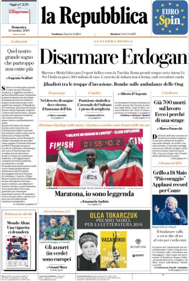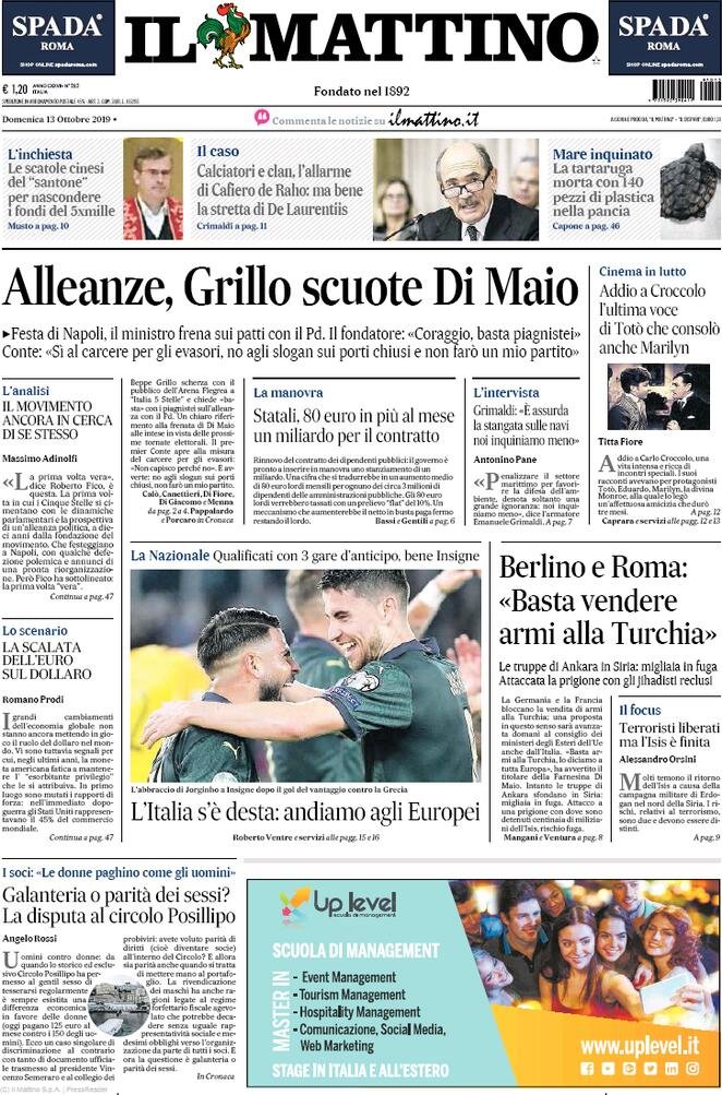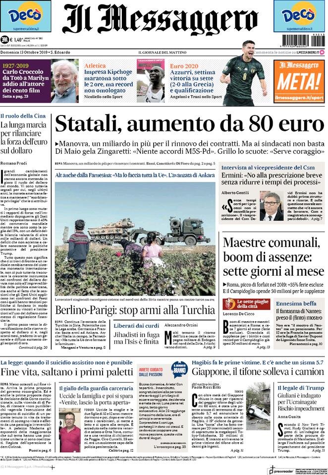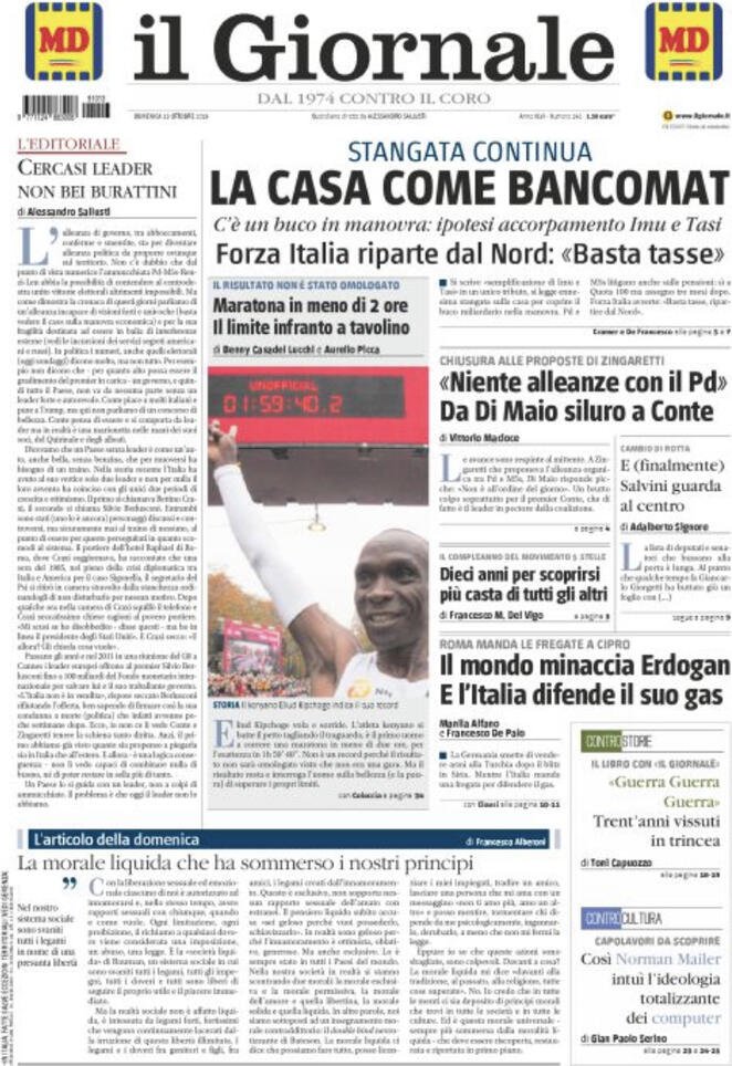 Le prime pagine dei principali quotidiani nazionali in edicola oggi