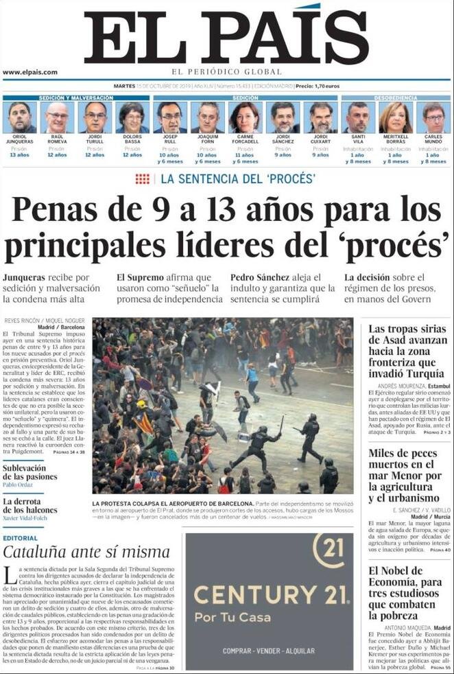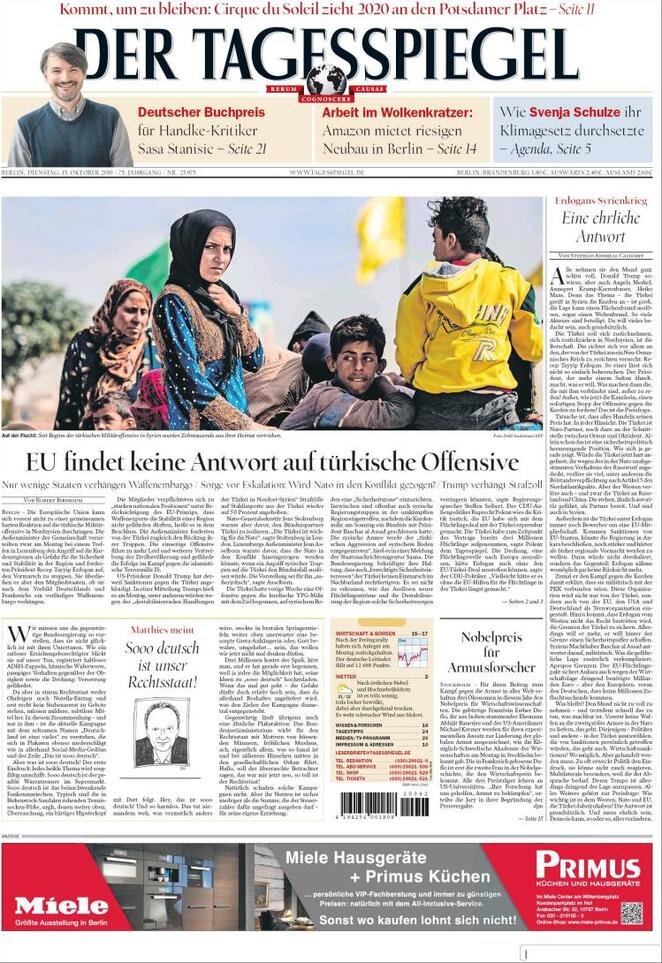 15 ottobre: prime pagine estero