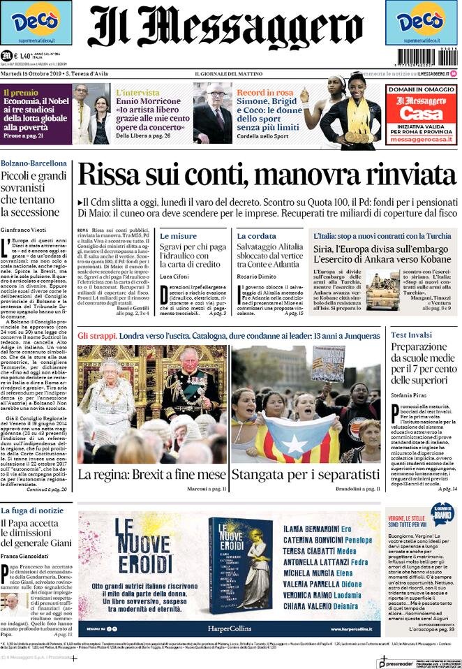 Le prime pagine dei principali quotidiani nazionali in edicola oggi
