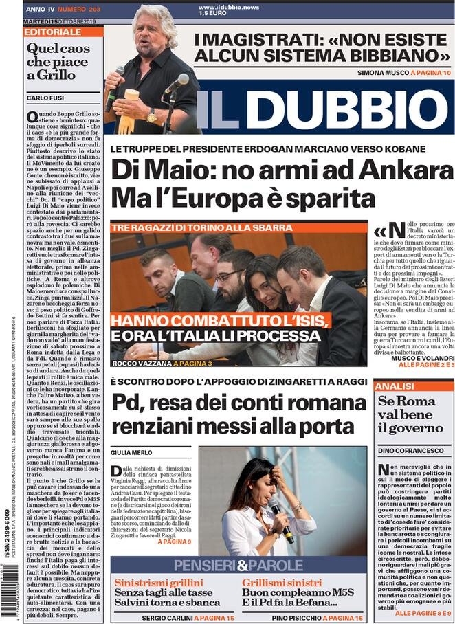 Fabrizio Sbardella, il dubbio, Il fatto quotidiano, Il Foglio, Il Gazzettino, Il Giornale, Il Manifesto, Il Mattino, Il Messaggero, Il Resto del Carlino, Il Secolo XIX, Il sole 24 ore, Il Tempo, ilcontadinodimontagna, Italia Oggi, L'osservatore romano, L'Unione Sarda, La Gazzetta del Mezzogiorno, La Prealpina, La Stampa, La Verità, Libero, Messaggero, MF, Milano Finanza, Osservatore Romano