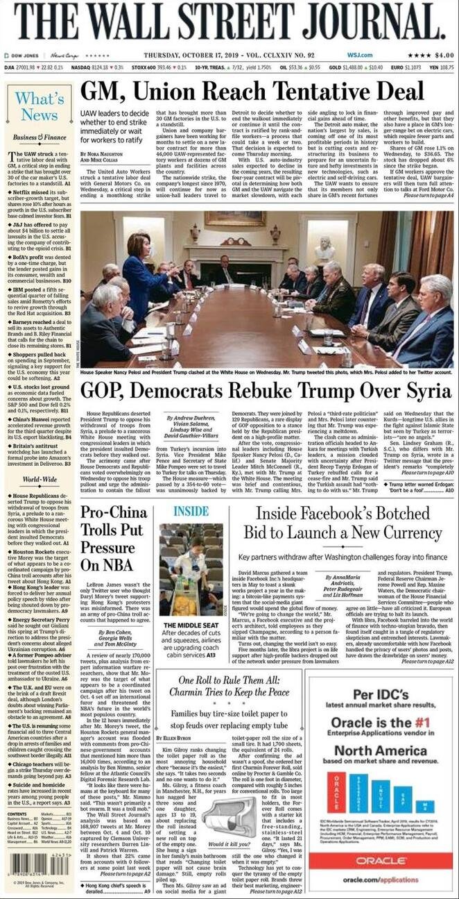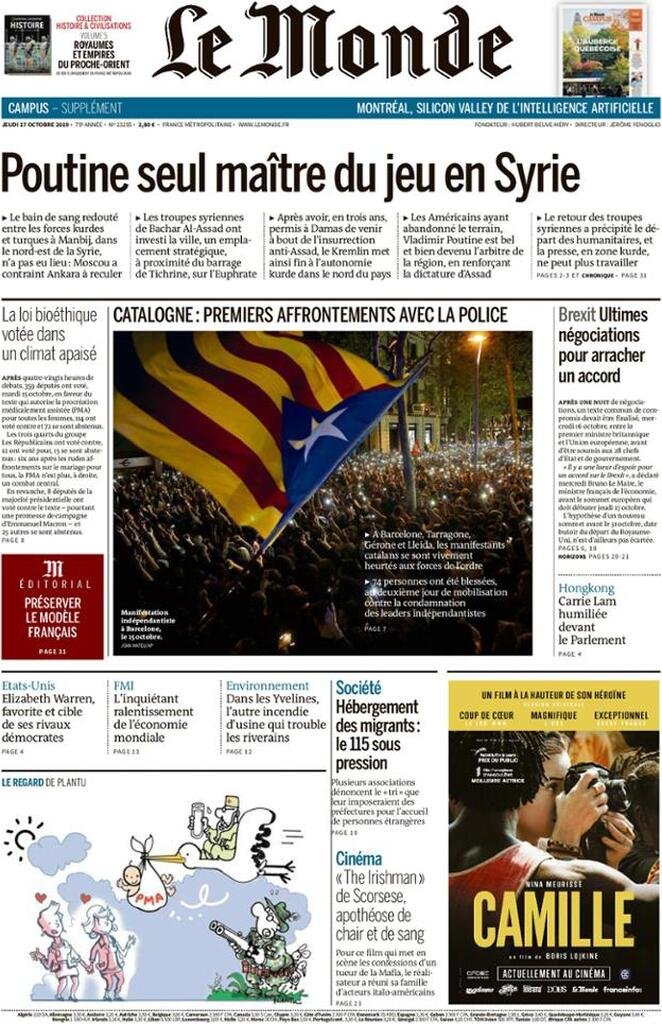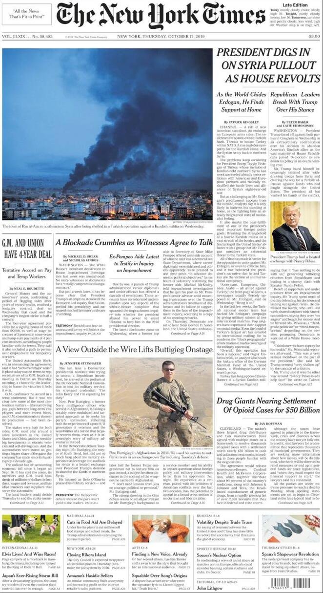 17 ottobre: prime pagine estero