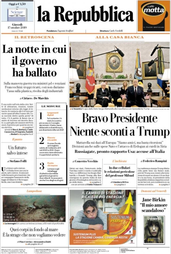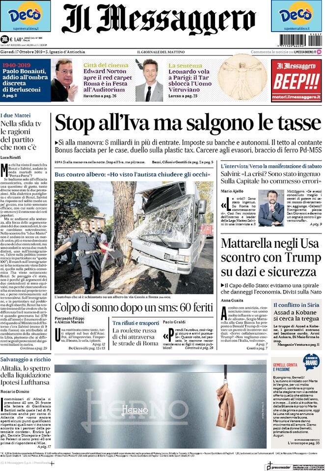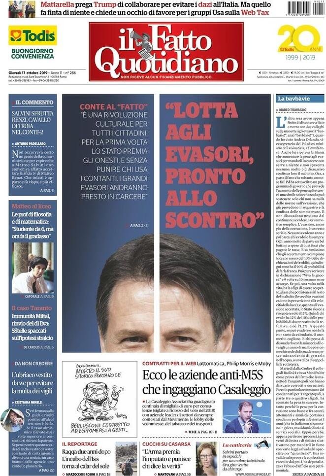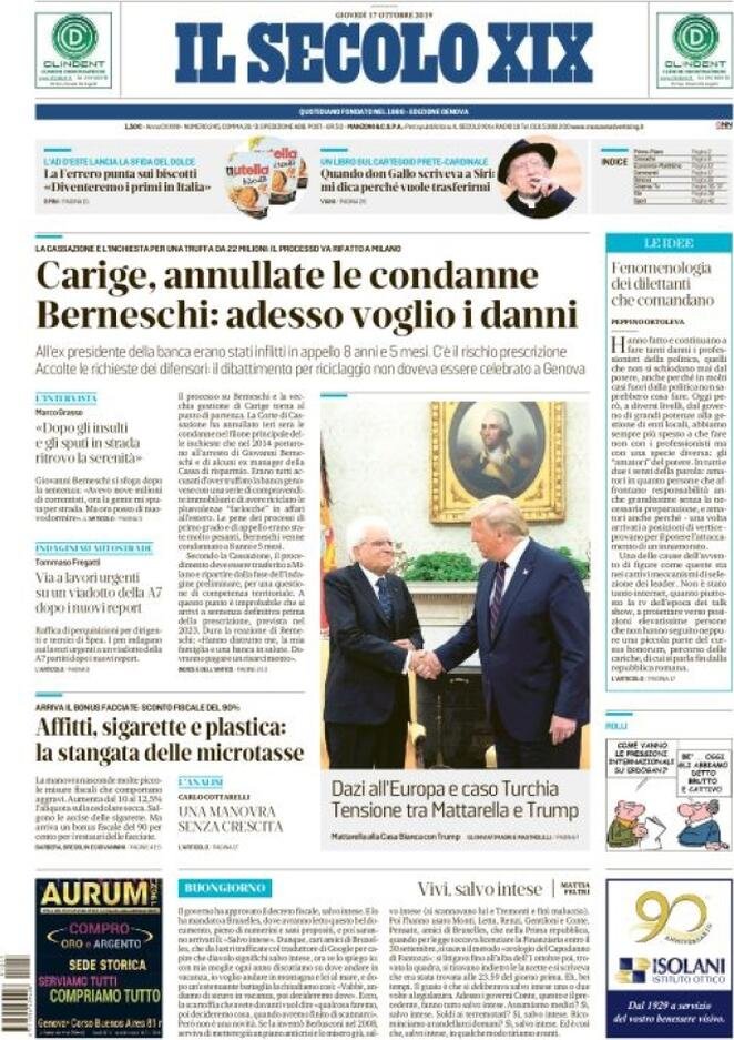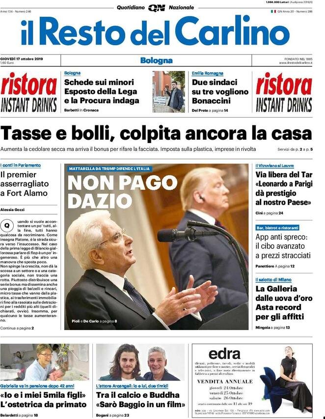 Avvenire, Fabrizio Sbardella, il dubbio, Il Foglio, Il Gazzettino, Il Giornale, Il Manifesto, Il Mattino, Il Messaggero, Il Resto del Carlino, Il Secolo XIX, Il sole 24 ore, Il Tempo, ilcontadinodimontagna, Italia Oggi, La Gazzetta del Mezzogiorno, La Notizia, La Prealpina, La Repubblica, La Stampa, La Verità, L’Osservatore Romano, L’unione Sarda, Libero, Marketing, Milano Finanza