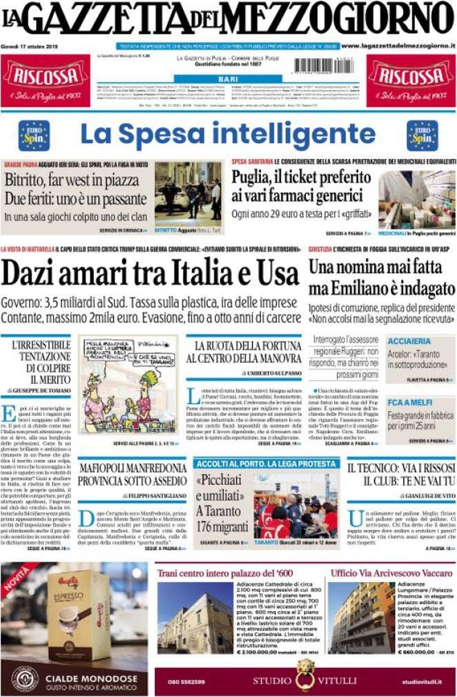 Cronache dal territorio, Cronache italiane, italia, prime pagine