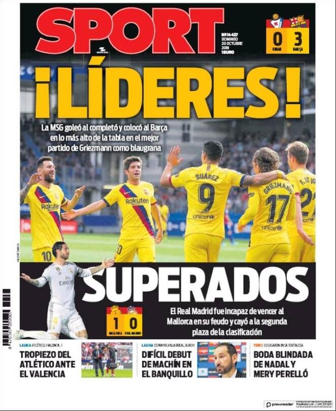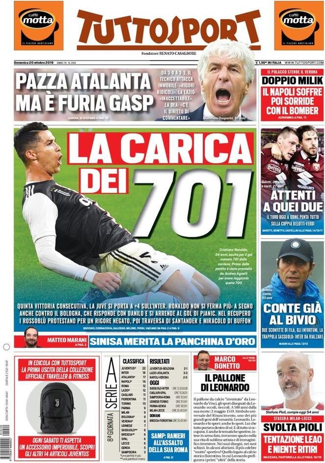 20 ottobre: prime pagine Sport