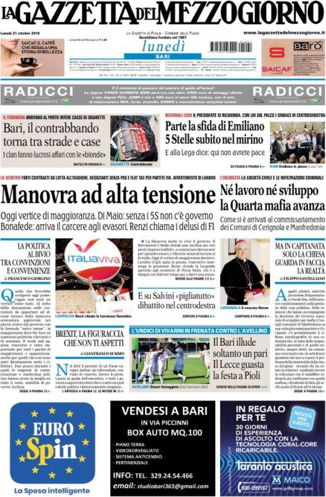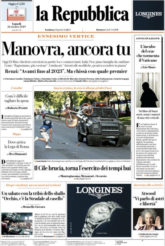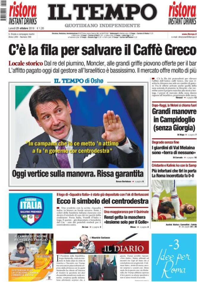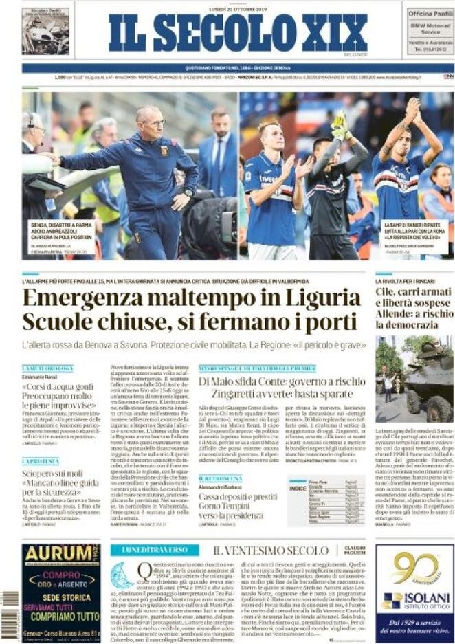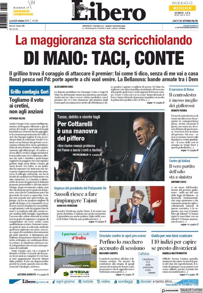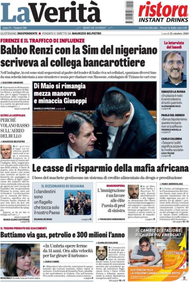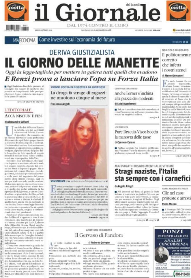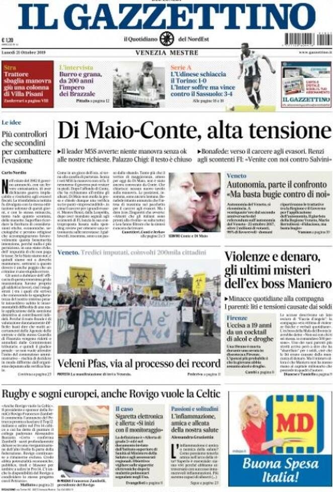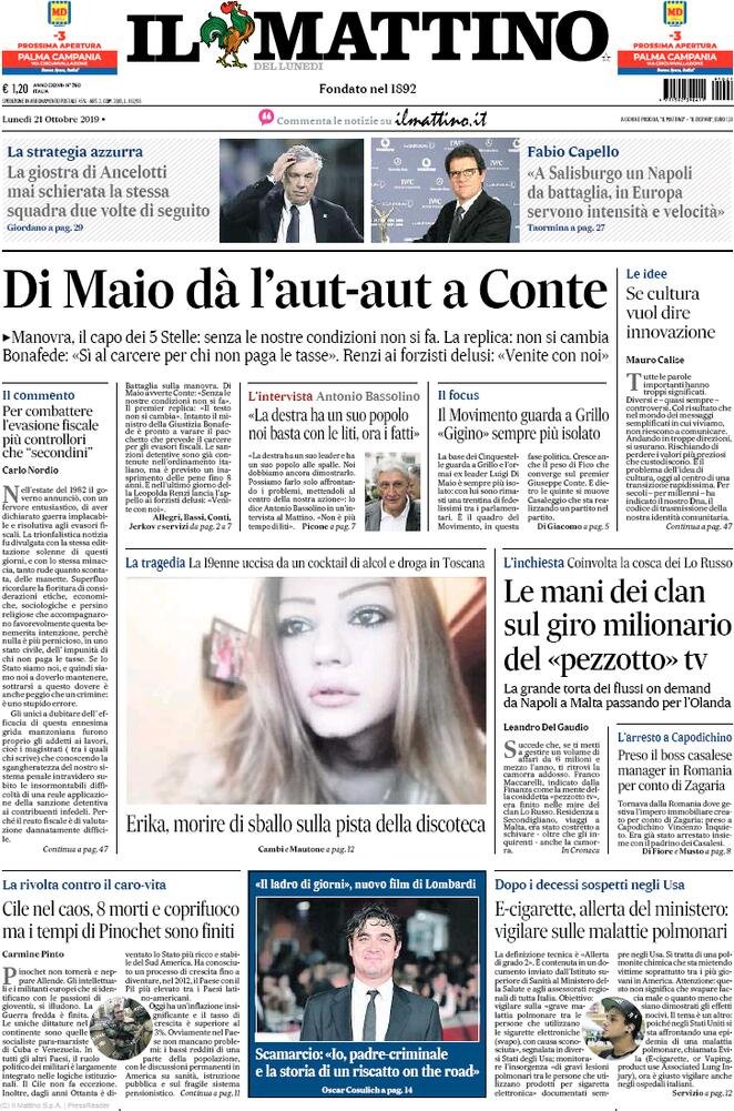 21 ottobre: prime pagine Italia