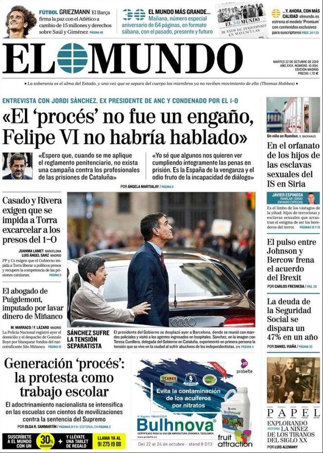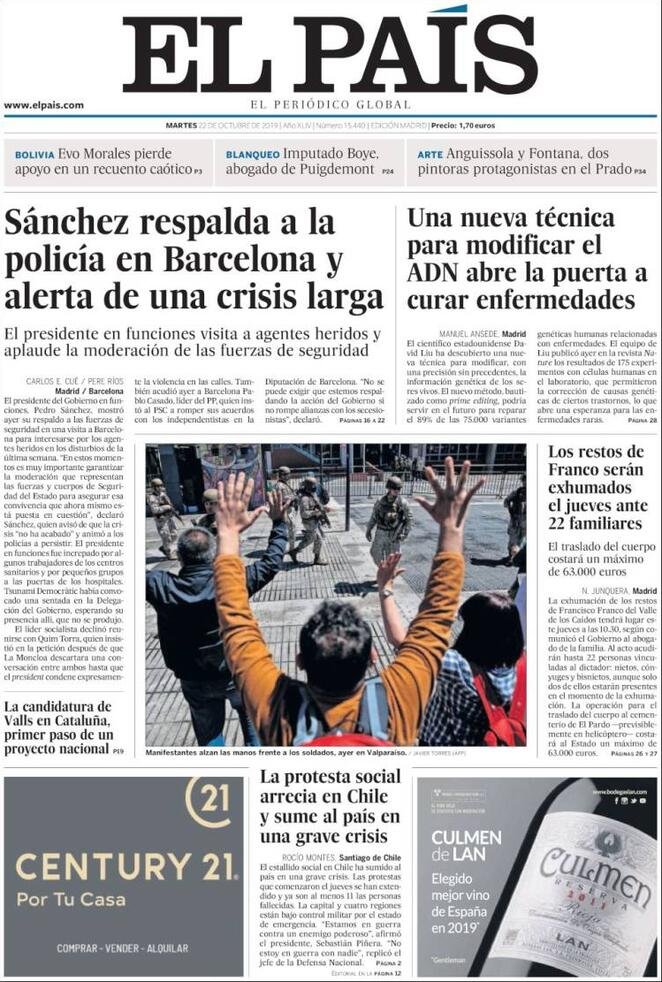 22 ottobre: prime pagine estero