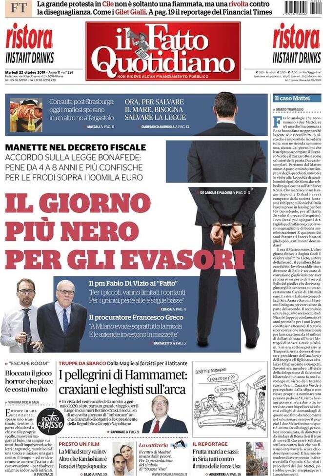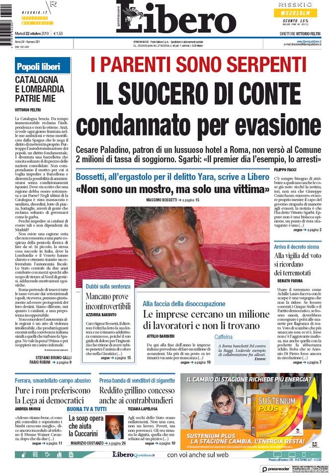 Avvenire, Fabrizio Sbardella, il dubbio, Il Fatto, Il Foglio, Il Gazzettino, Il Giornale, Il Manifesto, Il Mattino, Il Messaggero, Il Resto del Carlino, Il Secolo XIX, Il sole 24 ore, Il Tempo, ilcontadinodimontagna, Italia Oggi, L'osservatore romano, L'Unione Sarda, La Gazzetta del Mezzogiorno, La Notizia, La Prealpina, La Repubblica, La Stampa, La Verità, Libero, Marketing, Milano Finanza