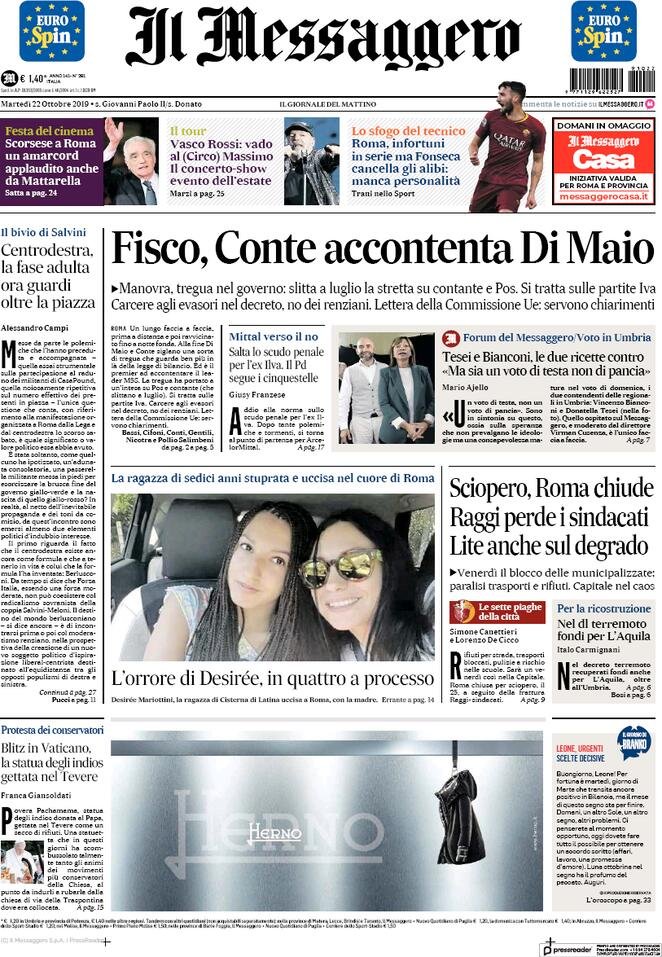 Le prime pagine dei principali quotidiani nazionali in edicola oggi