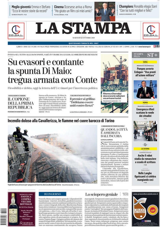 Cronache dal territorio, Cronache italiane, italia, prime pagine
