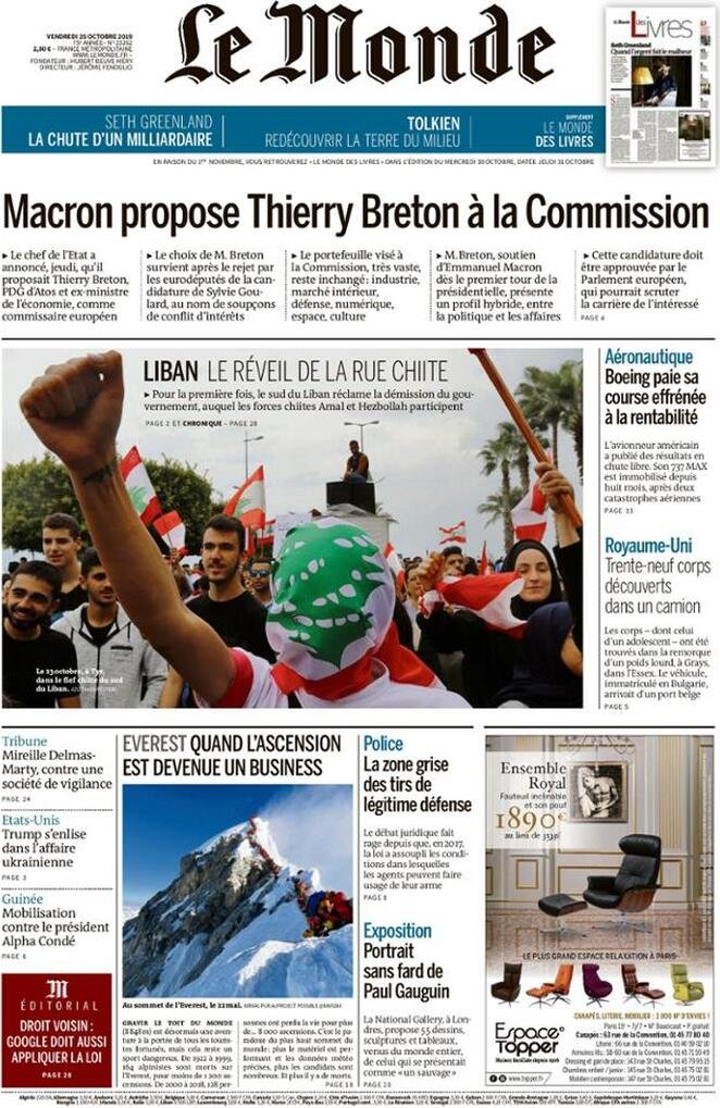 25 ottobre prime pagine estero