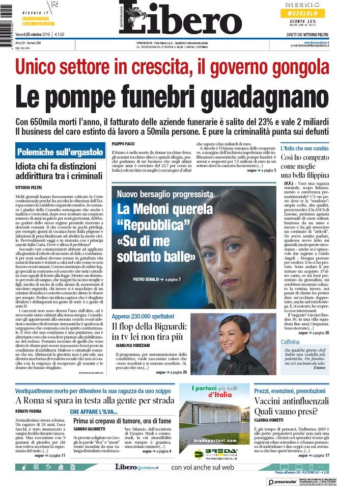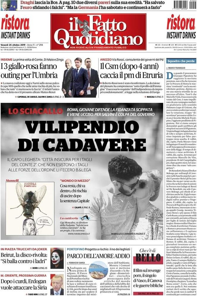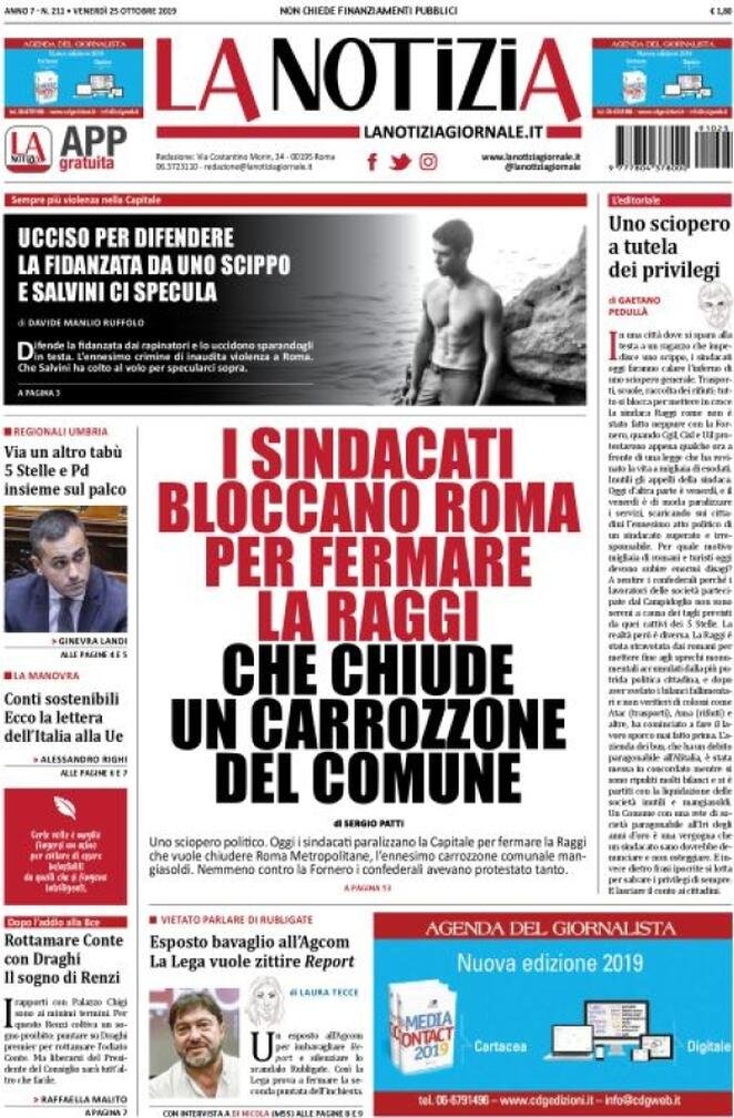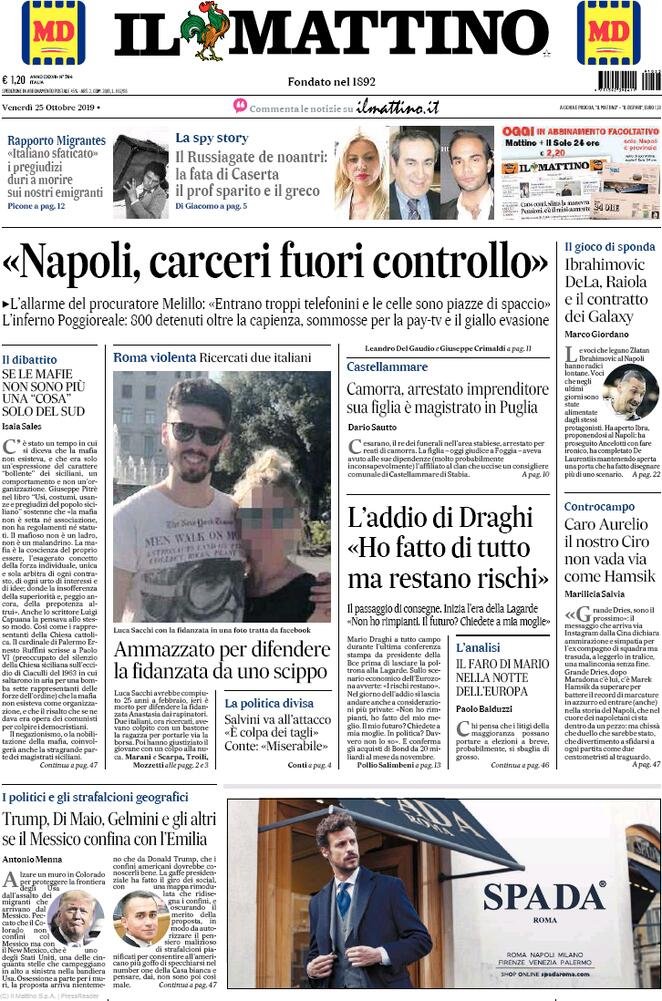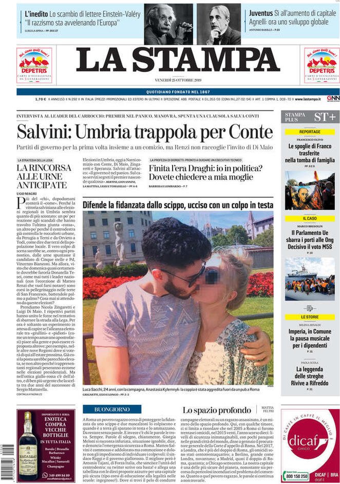 Le prime pagine dei principali quotidiani nazionali in edicola oggi