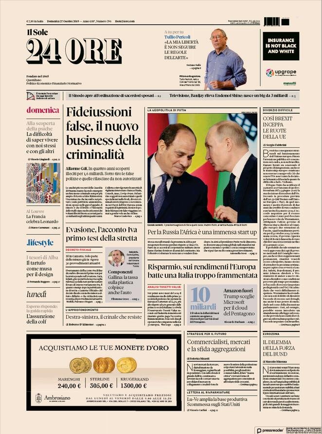 Le prime pagine dei principali quotidiani nazionali in edicola oggi