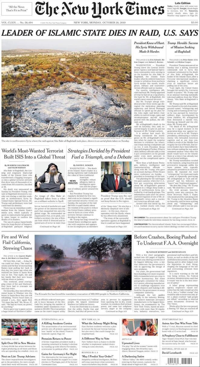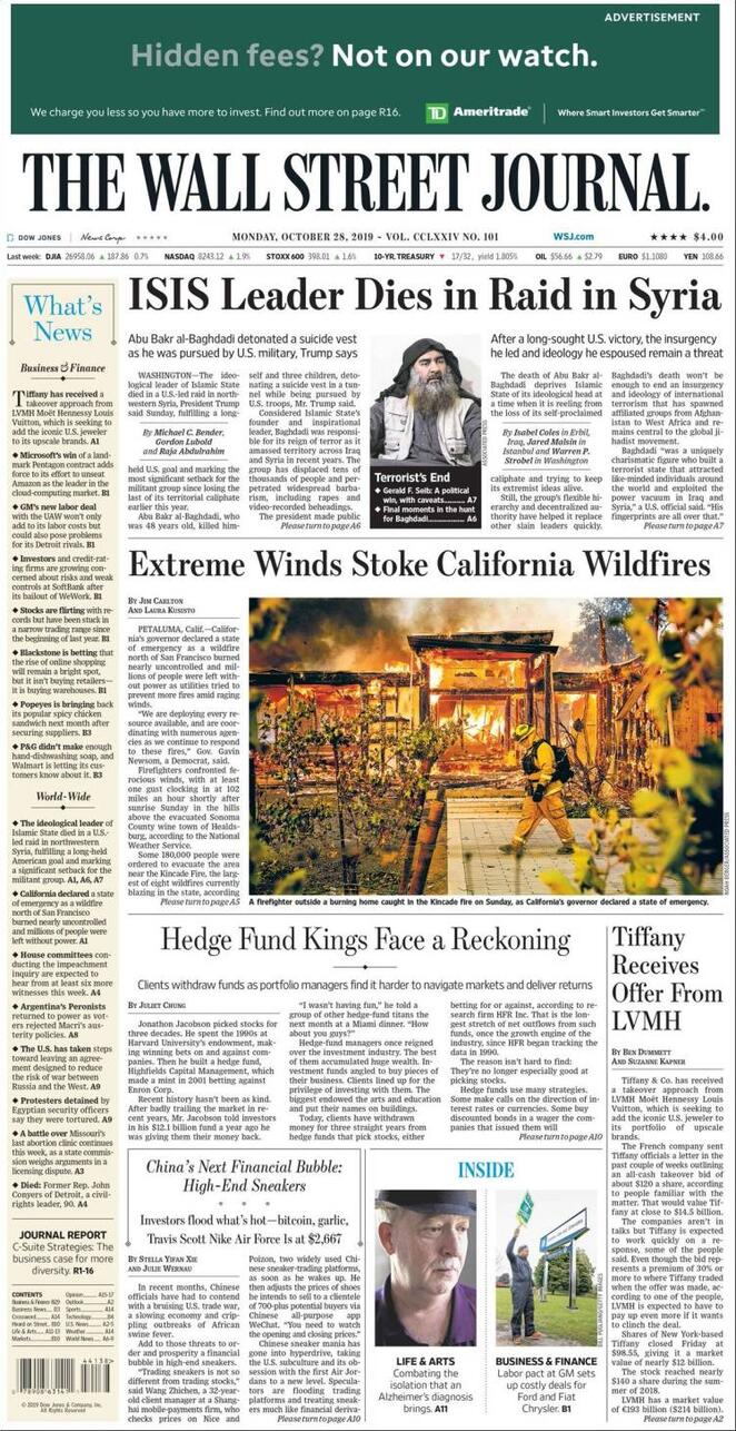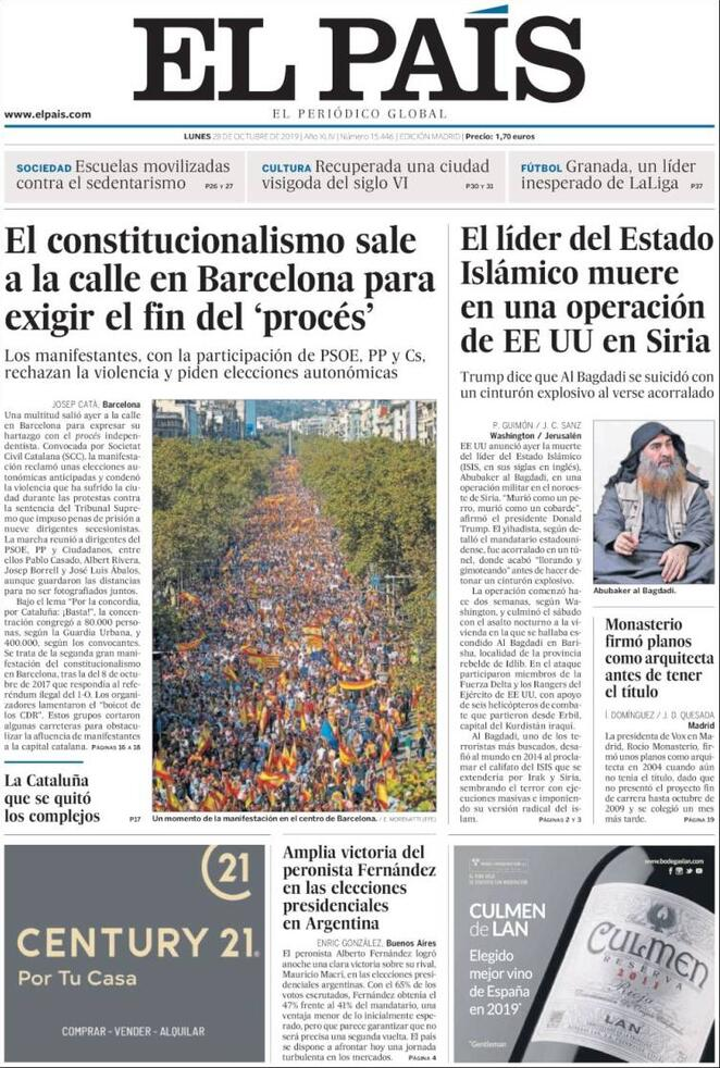 28 ottobre: prime pagine estero