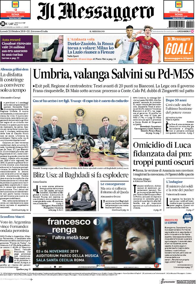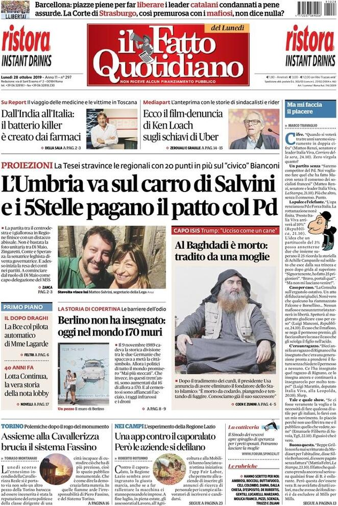 Avvenire, Fabrizio Sbardella, il dubbio, Il Fatto, Il Foglio, Il Gazzettino, Il Giornale, Il Manifesto, Il Mattino, Il Messaggero, Il Resto del Carlino, Il Secolo XIX, Il sole 24 ore, Il Tempo, ilcontadinodimontagna, Italia Oggi, L'osservatore romano, L'Unione Sarda, La Gazzetta del Mezzogiorno, La Notizia, La Prealpina, La Repubblica, La Stampa, La Verità, Libero, Marketing, Milano Finanza