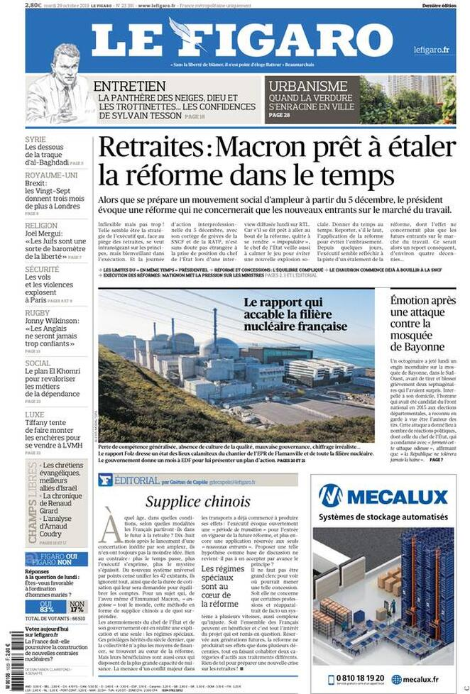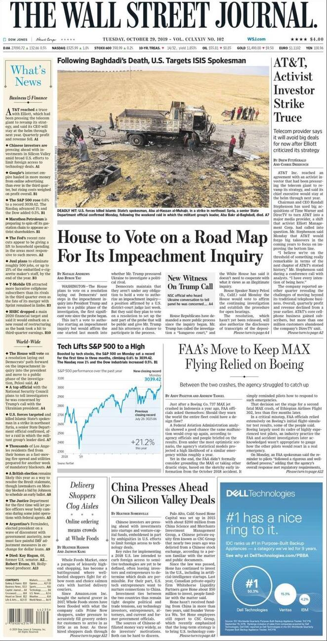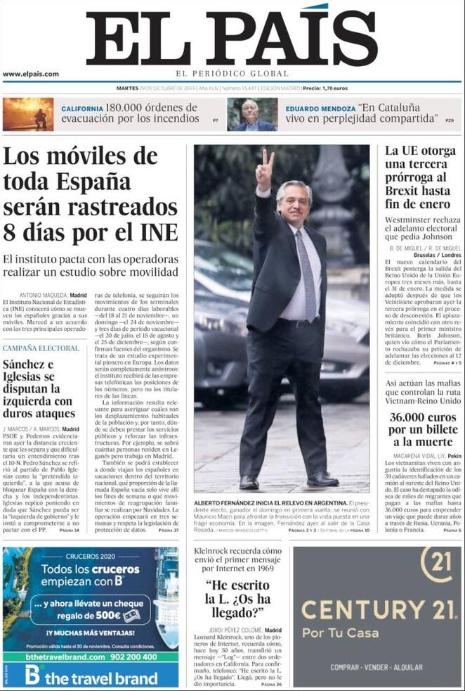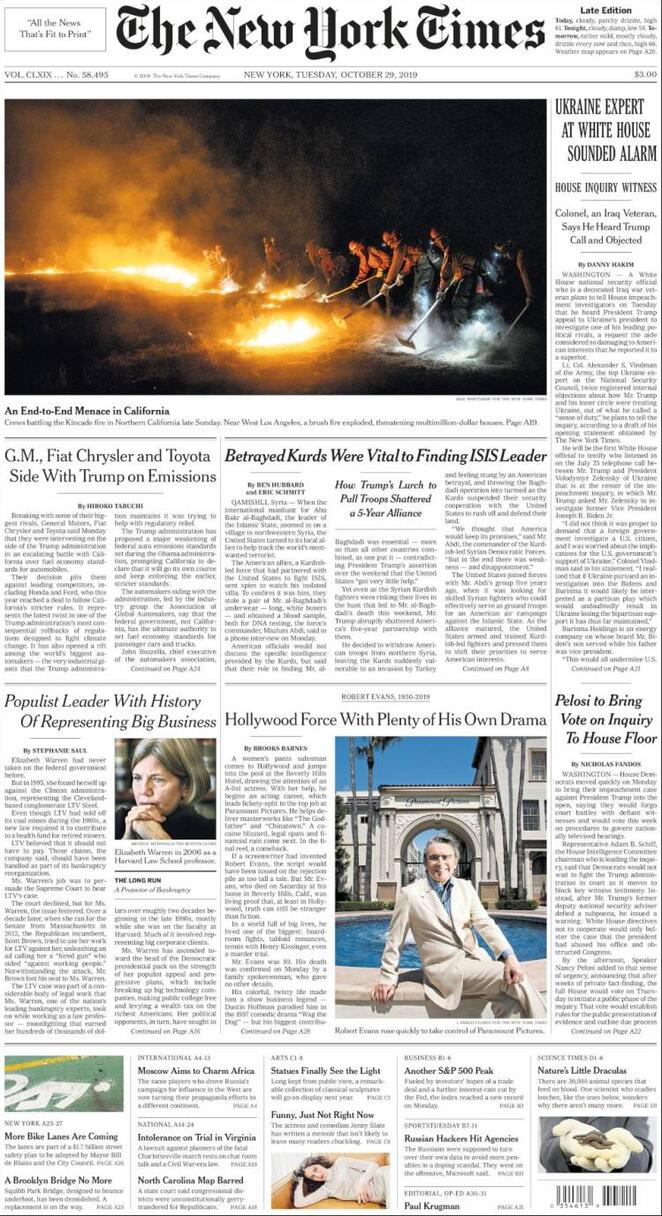 29 ottobre: prime pagine estero