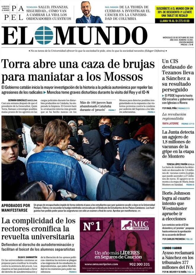 30 ottobre: prime pagine estero