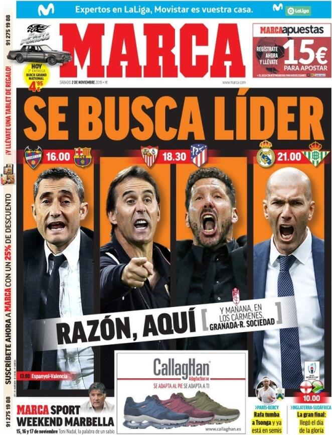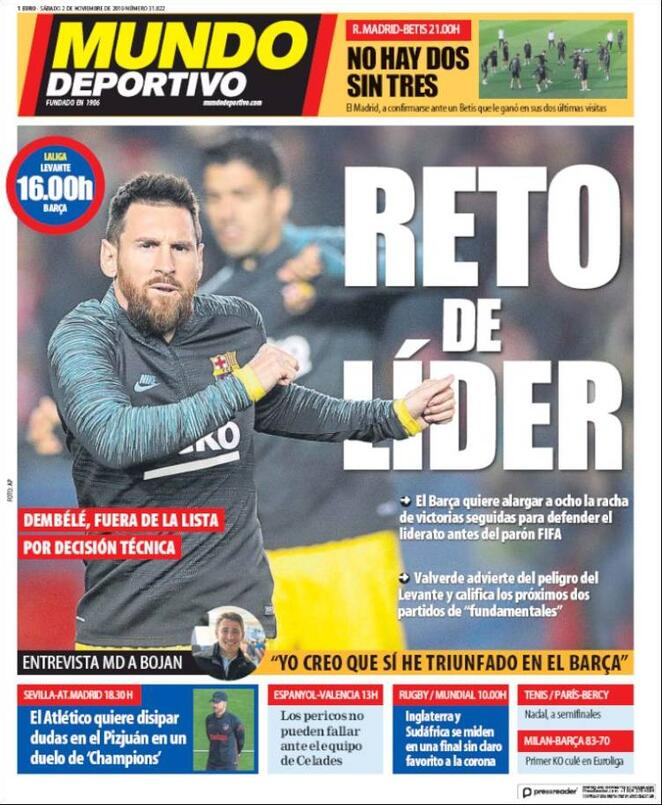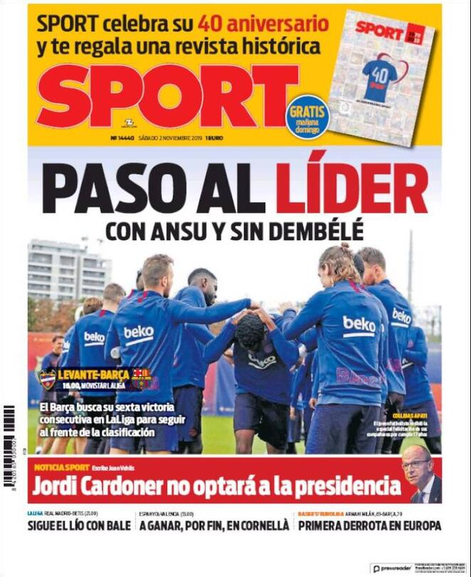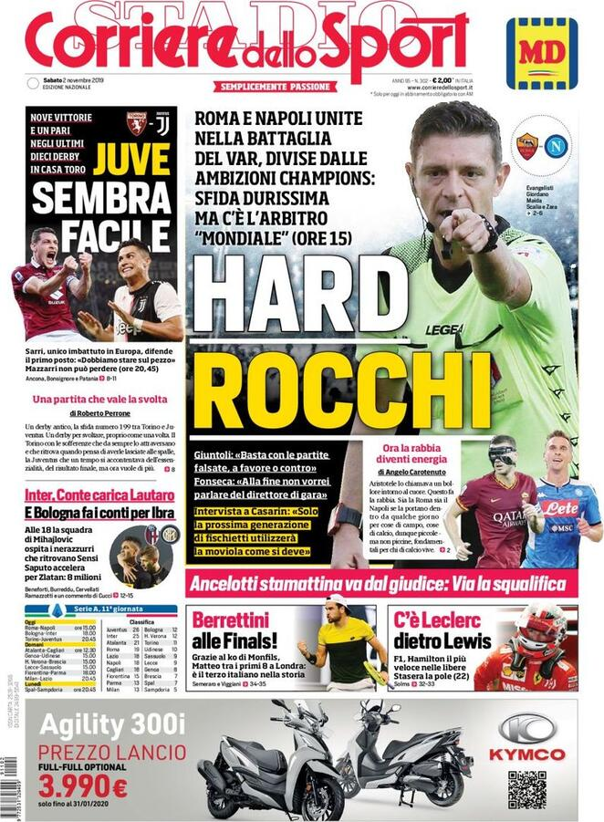 2 novembre: prime pagine Sport