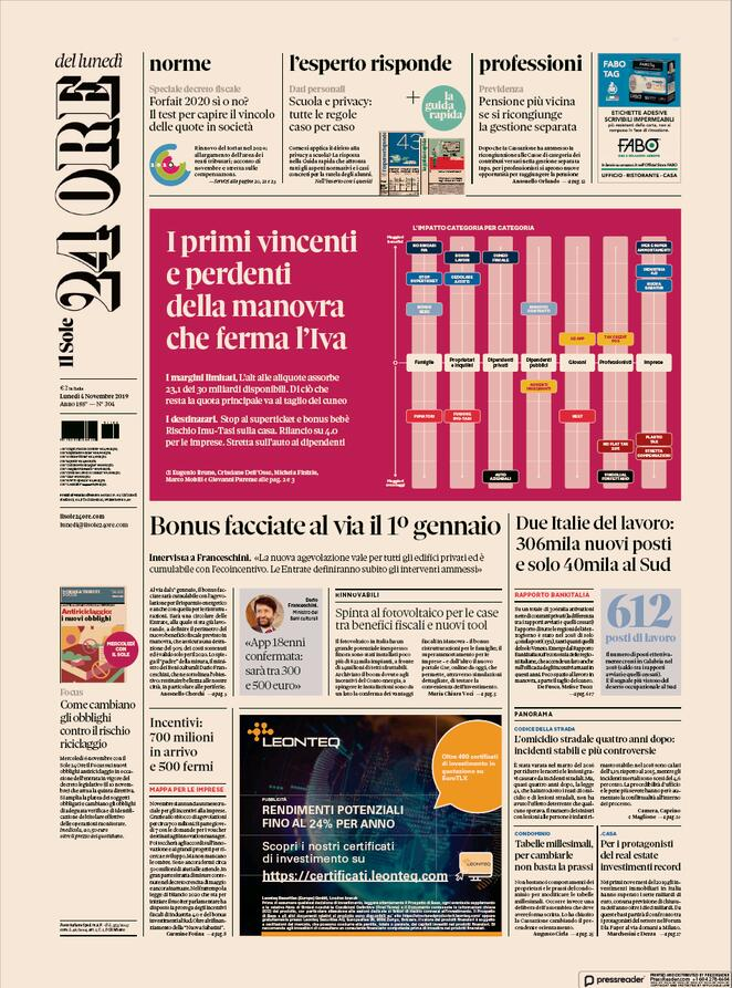 Le prime pagine dei principali quotidiani nazionali in edicola