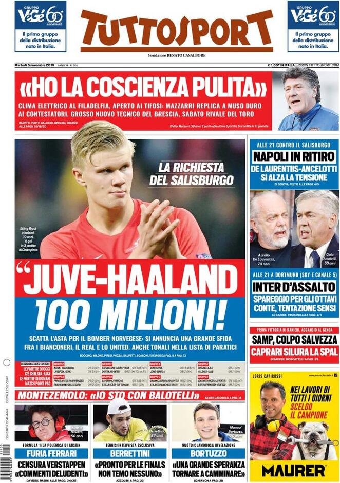 5 novembre: prime pagine Sport