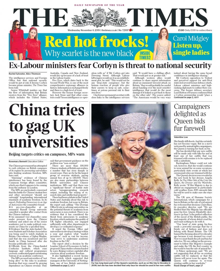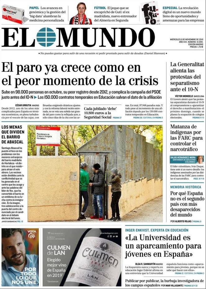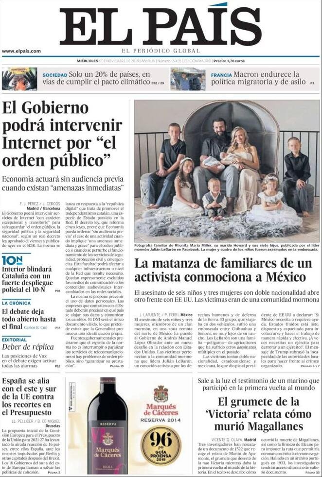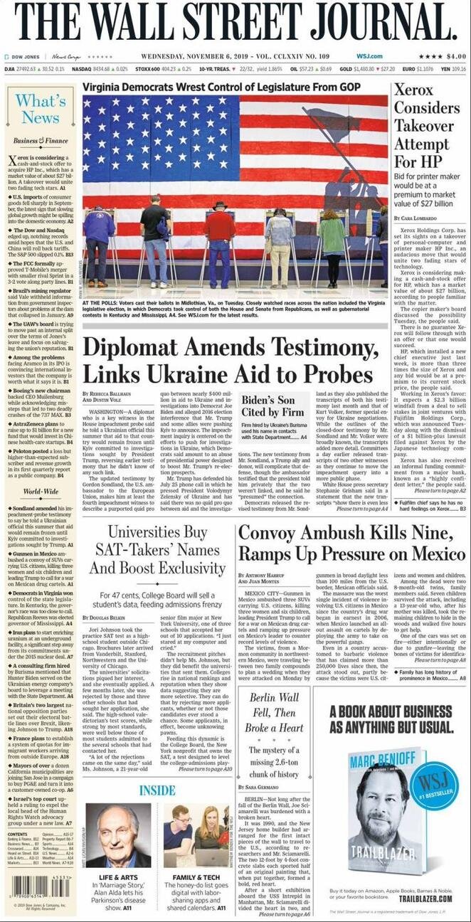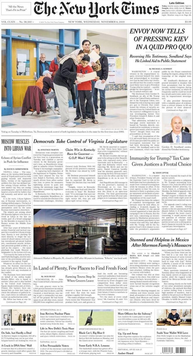 6 novembre: prime pagine estero