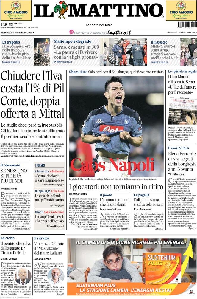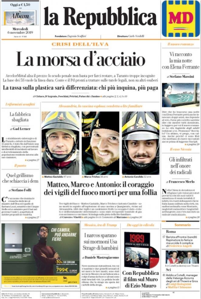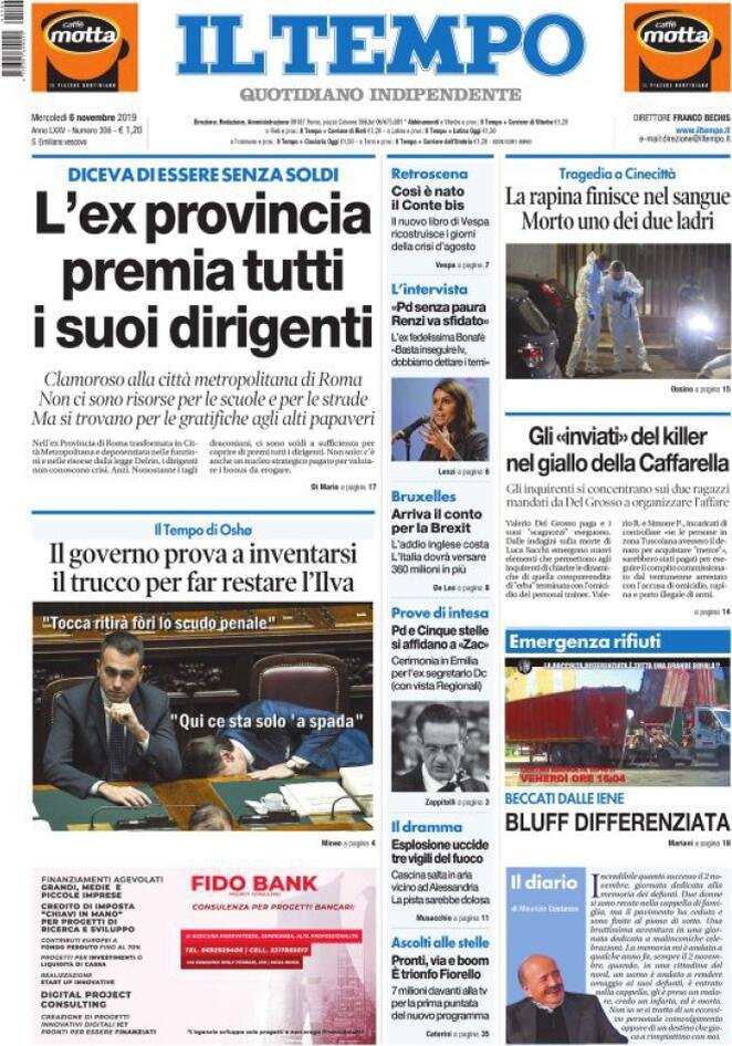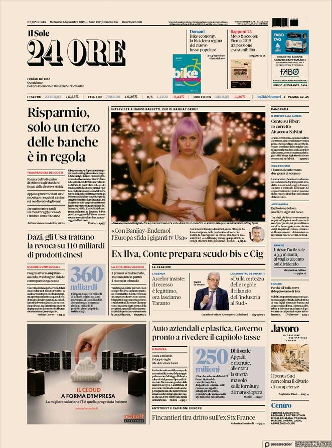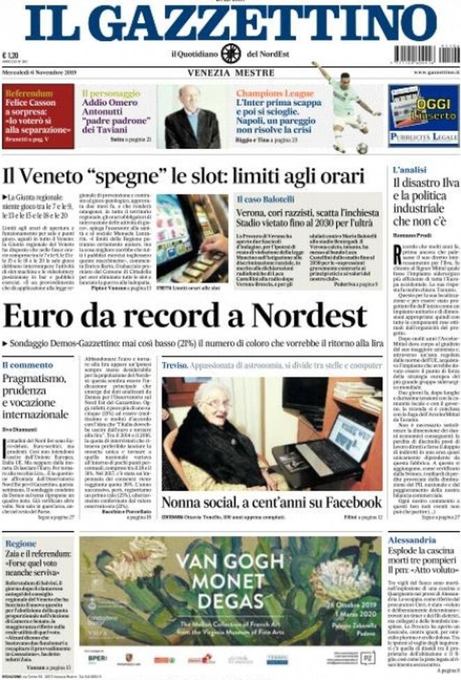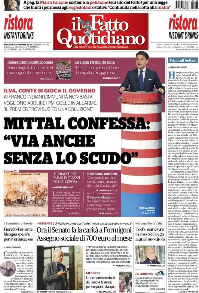 6 novembre: prime pagine Italia