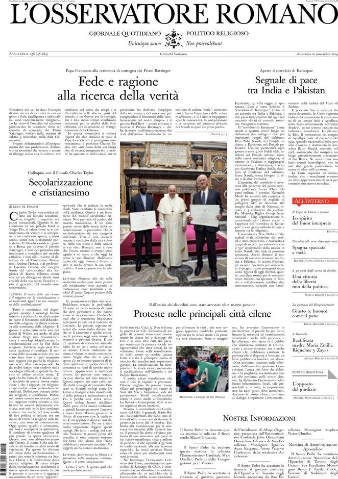 1. Fabrizio Sbardella, Daily Mail, Der Tagespiegel, El Mundo, El Pais, Fabrizio Sbardella, ilcontadinodimontagna, L'osservatore romano, Le Figaro, Le Monde, The Independent, The New Jork Time, The Times, The Wall Street Journal, Thr Walles Sunday, USA Today