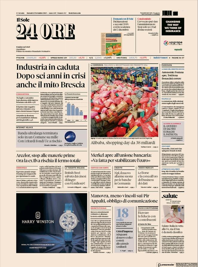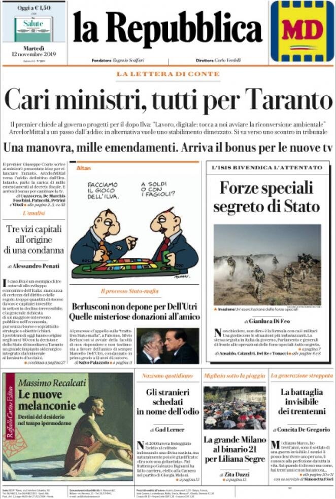 Avvenire, Fabrizio Sbardella, Il Corriere della Sera, il dubbio, Il Fatto, Il Foglio, Il Gazzettino, Il Giornale, Il Giorno., Il Manifesto, Il Mattino, Il Messaggero, Il Resto del Carlino, Il Secolo XIX, Il sole 24 ore, Il Tempo, ilcontadinodimontagna, Italia Oggi, L'Unione Sarda, La Gazzetta del Mezzogiorno, La Notizia, La Prealpina, La Repubblica, La Stampa, La Verità, Libero, Marketing, Milano Finanza