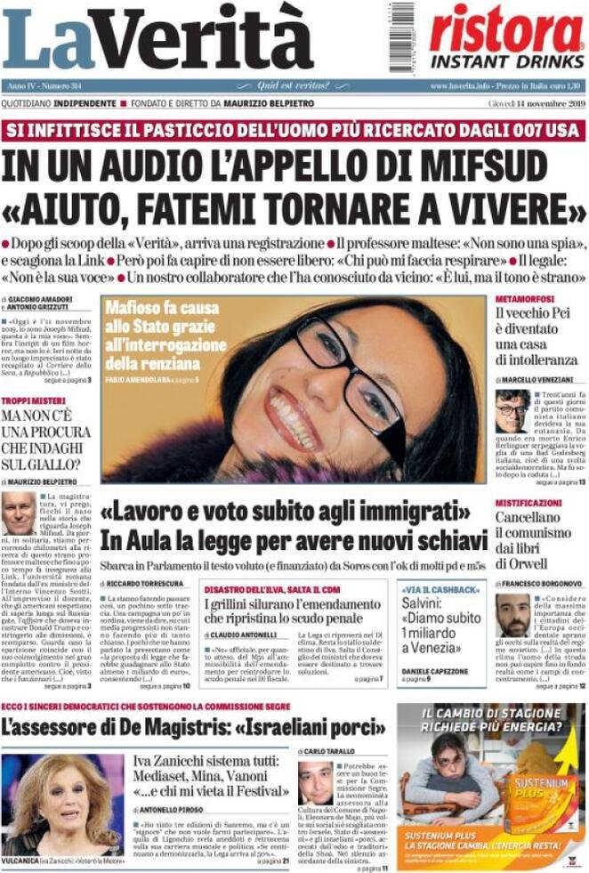 Avvenire, Fabrizio Sbardella, Il Corriere della Sera, il dubbio, Il Fatto, Il Foglio, Il Gazzettino, Il Giornale, Il Giorno., Il Manifesto, Il Mattino, Il Messaggero, Il Resto del Carlino, Il Secolo XIX, Il sole 24 ore, Il Tempo, ilcontadinodimontagna, Italia Oggi, L'Unione Sarda, La Gazzetta del Mezzogiorno, La Notizia, La Prealpina, La Repubblica, La Stampa, La Verità, Libero, Marketing, Milano Finanza