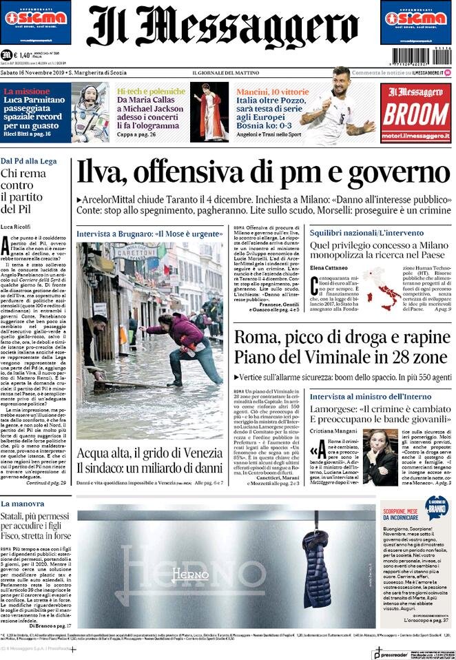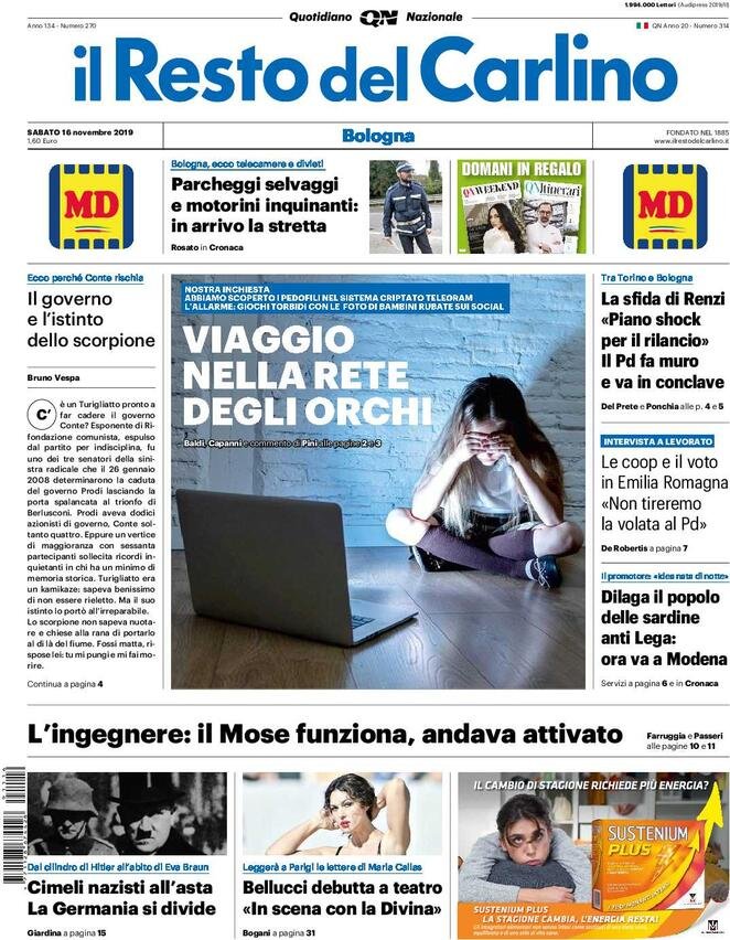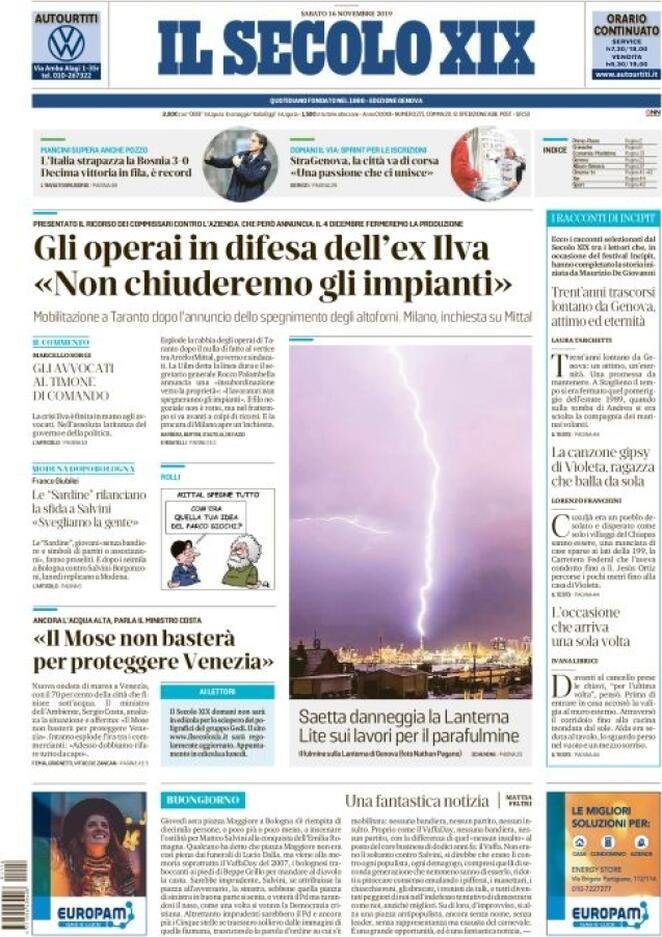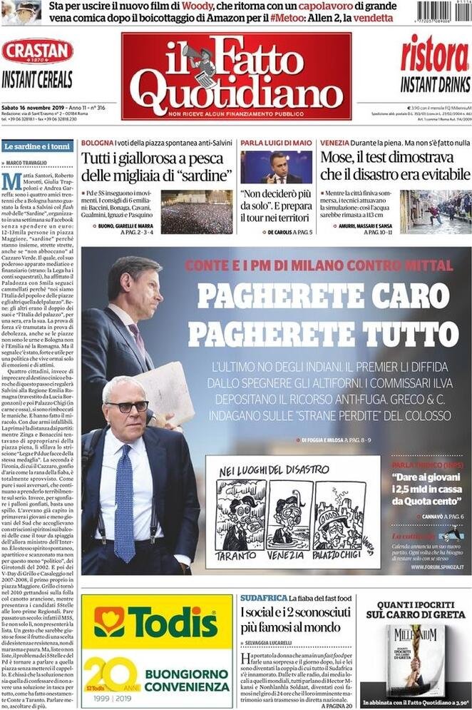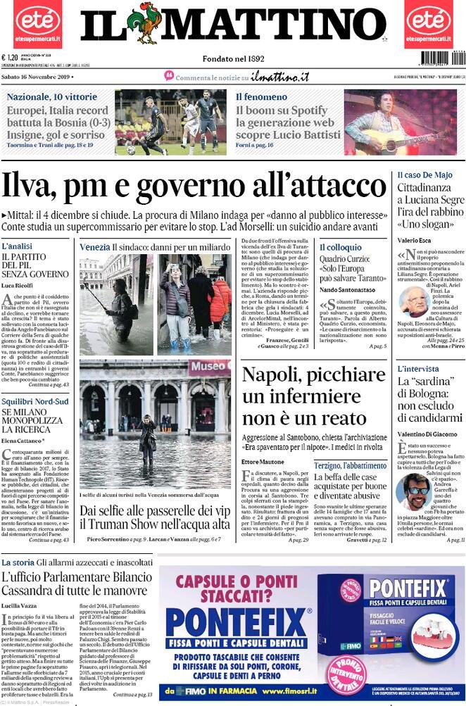 16 novembre: prime pagine Italia