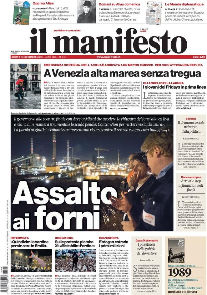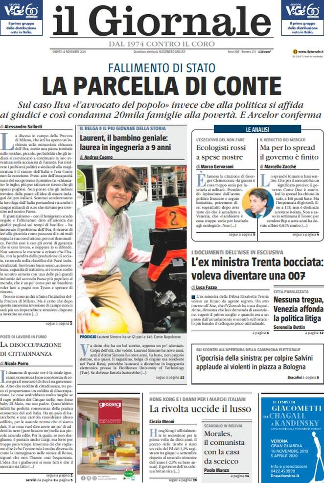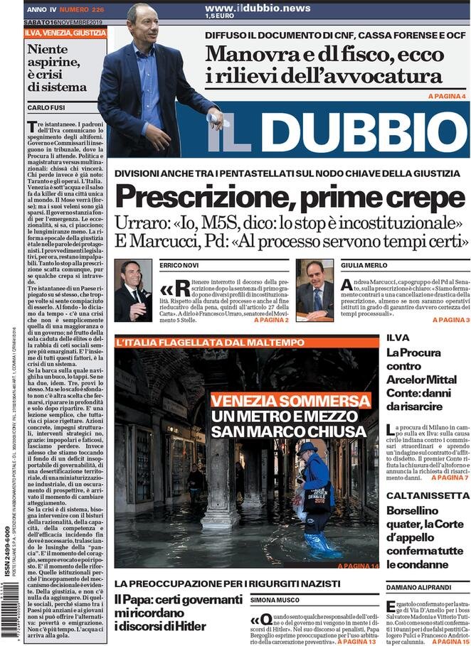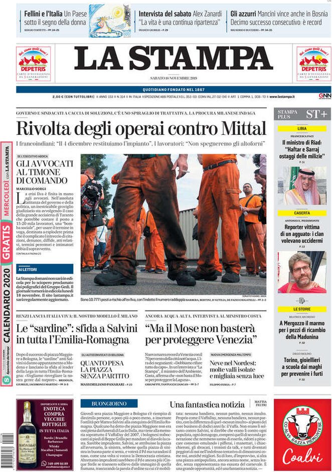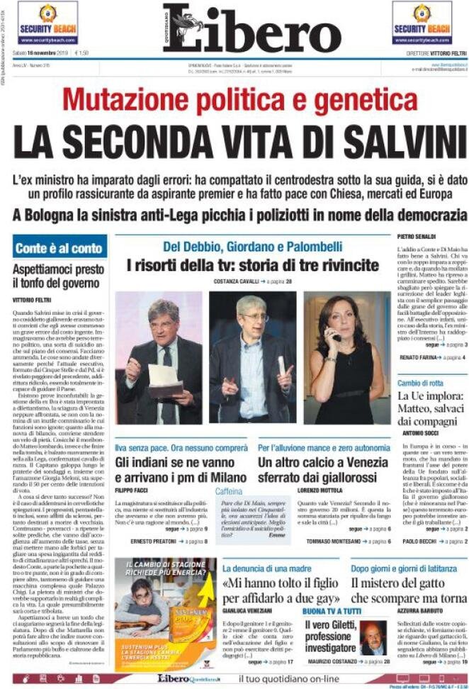16 novembre: prime pagine Italia