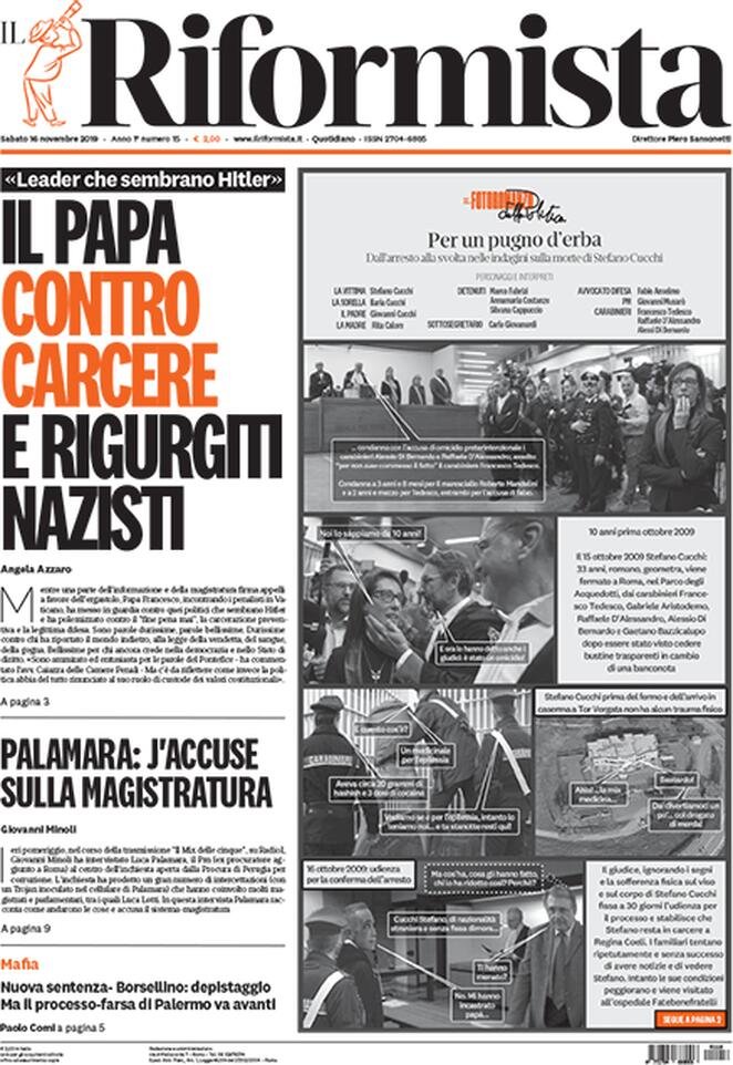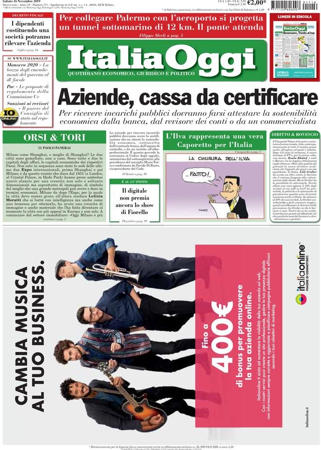 Avvenire, Fabrizio Sbardella, Il Corriere della Sera, il dubbio, Il Fatto, Il Foglio, Il Gazzettino, Il Giornale, Il Giorno., Il Manifesto, Il Mattino, Il Messaggero, Il Resto del Carlino, Il Secolo XIX, Il sole 24 ore, Il Tempo, ilcontadinodimontagna, Italia Oggi, L'Unione Sarda, La Gazzetta del Mezzogiorno, La Notizia, La Prealpina, La Repubblica, La Stampa, La Verità, Libero, Marketing, Milano Finanza