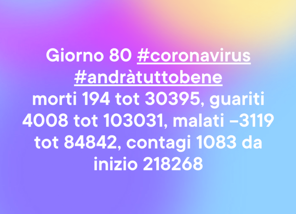Nella mattinata dello scorso 20 febbraio il “paziente numero uno”, un manager trentottenne, veniva ricoverato nel reparto di rianimazione dell’ospedale di Codogno e abbiamo cominciato a percepire piano piano, ma in un continuo crescendo la tragedia che stava cambiando la storia del pianeta: È SUCCESSO SOLO 80 GIORNI FA – #protezionecivile #coronavirus #epidemia #pandemia #andràtuttobene #covid19